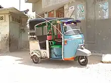 Rickshaws are a popular method of travelling in Karachi, they're cheap, flexible and are everywhere in the city at any time of day. If you need to travel shorter distances, go by rickshaw. They're small three-wheeled vehicle powered by a two-stroke or four-stroke engine, partially enclosed contraptions (no doors), run on CNG and can seat three people in the back. You can find them everywhere. Set prices beforehand since most are not equipped with meters and if you're over quoted, don't be afraid to walk away. It's usually easy to find another one soon, usually with a driver who won't rip you off. They don't usually follow traffic guidelines, so some might think it's dangerous, but they're perfectly safe and a cheap way to get around, at-least much cheaper than taxis. Pregnant ladies are most strongly advised not to travel by auto-rickshaws since the combination of rash driving, poor suspensions, and horrible road conditions have quite often led to serious complications. The auto-rickshaw is a slow and uncomfortable vehicle and not recommended for very long distances. The rickshaw drivers are generally helpful and If a rickshaw driver offers to show/drive you to some great places to shop, firmly refuse.