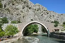 The 🌍 Şekerpınarı Bridge (Şekerpınarı Köprüsü), also Akköprü ("white bridge"), is a stone humpback Roman bridge over the Çakıt. It's just to the west of D750, about 5 km north of Pozantı.