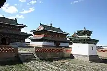 - ๐ Erdene Zuu Monastery (Erdenezuu) (just outside town of Kharkhorin, to the north of Kharakhorum Museum). Daily. This Monastery was originally built in the 1500s, but has been destroyed several times. It is free to enter the grounds, but a tour inside the old temples costs 3000 โฎ, 5000 more to take pictures inside. In the NW corner is an active Temple serving the local population, this temple is in Tibetan style. none.