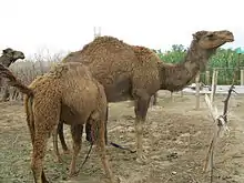 Camels in Erbent. Fermented camel milk is a traditional drink of the region.