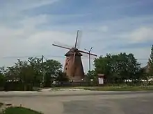 The Dózsa György út former Souto, i.e. the urban section of the Debreceni-Szolnok Road. At the mouth of the main square, on the left, you can see some of the buildings that have survived from the end of the 19th century and the beginning of the 20th century. On the corner of Táncsics Boulevard is the former Gentleman's Casino (1894). On the right side of the road, rises the two-storey building of the Déryné Cultural Centre. The next building is the Catholic Bachelors' Association (now the Karcag Vocational Training Centrer and the Farmer's Information Office), and then on the Szőllős mound. At the end of the road, on Vágóhíd utca, you can already see the only intact windmill in Karcag, which has been an industrial monument since the end of the 1970s.