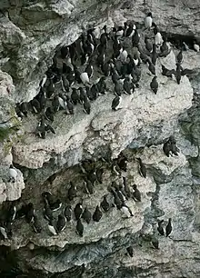 The islands attract large colonies of seabirds, and is the only proper "bird mountains" in the Baltic Sea. The most notable seabird colonies are common guillemots, black guillemots and razorbills. Notable predators include the Peregrine falcon and eagles. Since the bronze age the islands have been grazed by Gute sheep, the oldest sheep race in Sweden, and a common symbol of Gotland.