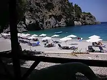 - Arkasa a well-organized beach in Arkasa southwest of Pigadia. It is one of the best beaches of the island with sandy beach with nice white sand and shallow sea while it is very popular because of big wave. There are sunbeds, umbrellas, and showers.