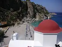 - Agios Mynas beach 20 km from town in the north of Karpathos, although isolated, has become more and more popular, however the prices of restaurants and chartering of deckchair and beach umbrellas have risen a lot.
