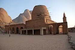 Khatmiya is the old part of Kassala, underneath the mountains of Taka, Totil and Aweitila (huge, you can't miss them). The main sight is the tomb of Seyyid Hassan, a local holy man who is buried in a roofless dome next to a semi-ruined mosque. Locals tell you that he is so holy that when it rains, not a drop falls through the hole in the roof. Next to the tomb is a Qur'anic school for boys.
