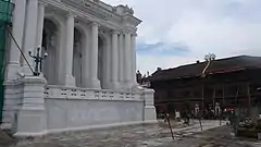 In Nepali, Durbar means "palace" and this is where the monarch was crowned, and from where he ruled. This ancient square, which is still under reconstruction as of April 2023, is crowded with palaces and temples, including the current incarnation of the Kasthamandap or "Wooden house" that gives the city its name. The square has been occupied since the construction of a palace around 1000 CE. This site is the most popular UNESCO World Heritage Site in Nepal.