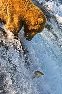 Bear viewing - Katmai is one of the premier brown bear viewing areas in the world. About 2,200 brown bears live in the park and preserve. Brooks Camp is the most visited area of the park where brown bear congregate to feed on sockeye salmon at the 🌍 Brooks Falls or the Brooks River. Viewing platforms have been set up to accommodate visitor numbers without affecting bear behavior.