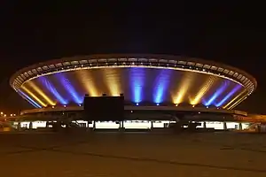 The construction of the Roundabout and the "Flying Saucer" (Spodek) Sports Hall (1962–71) had a significant impact. Other major constructions of the communist period include a number of outlying residential districts, such as Tysiąclecie district on the border of Katowice and Chorzów, the Paderewski district to the east of the city, the Południe district covering the suburbs of Kostuchna, Piotrowice, Ligota, and the Roździeński district.
