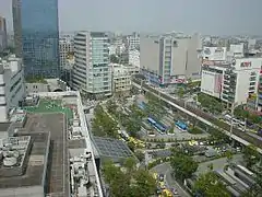 Two major roads run through central Kawasaki Ward on either side of the Kawasaki train stations: To the east of the trains is Route 15, also called Dai-ichi Keihin (第一京浜) while to the west of the trains is Route 1, also called Dai-ni Keihin (第二京浜). Both roads run between Tokyo and Yokohama. Route 409 runs across these roads north of Kawasaki station.