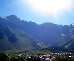 Stepantsminda (Georgian: სტეფანწმინდა; formerly Kazbegi, Georgian: ყაზბეგი) is a town in the north of Georgia, popular for the trekking opportunities in the visually spectacular surrounding mountains, its views of the mighty Mount Kazbeg, and for the beautiful view from the town of the Holy Trinity Church outlined against Mount Kazbeg itself.