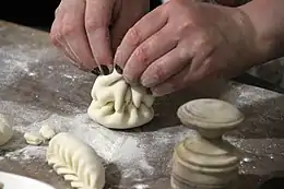 Lady preparing khinkali, Kazbegi style
