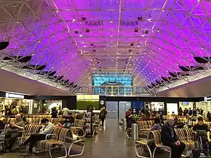 Keep in mind that the only sitting area to wait your flight are at the north plaza and the C and D Gates. There are only few seats at the A gates and the south plaza.