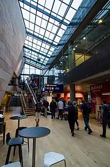 If Iceland is your final destination, walk to the North Plaza and take the escalators on the west side surrounded by glass walls to arrivals and baggage claim. There is a duty free shop there which offers a rare opportunity to stock up on alcoholic beverages which are so significantly cheap compared to outside the airport, that even arriving Icelanders do so too!