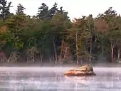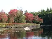 Interior camping can provide excellent wildlife viewing opportunities. Moose, warblers, white-tailed deer, barred owls, beavers, porcupines, woodpeckers, martens, and loons are not uncommon, especially along waterways. Black bears, though present in the park, are seldom seen. Coyotes are also present in this park. Harbour and grey seals are often seen along the seaside coast basking on its rocks. There are several uncommon species of organisms that call Kejimkujik their home. The Blanding's turtle which is considered an endangered species in Nova Scotia is similar in size to the common painted turtle; however the Blanding's is characterized by its yellow neck. Juveniles measure between 5 and 12 cm in carapace diameter while adult females can measure between 25 and 35 cm. It is a very gentle turtle that frequently nests on beaches that are accessible by the public. For this reason it is important for visitors to be careful not to disturb nesting turtles, and to report any sightings to the visitor centre. The eastern ribbon snake is a threatened species in Nova Scotia and lives in several isolated areas in the park. The eastern ribbon snake, upon first glance, may be easily confused with the common garter snake, but the eastern ribbon snake is defined by three longitudinal yellow stripes on the dorsal side and a black or dark brown colouration. Adult eastern ribbon snakes in the park usually measure between 50 and 70 cm in length. Kejimkujik is one of two places in Canada where Hydrocotyle umbellata or water pennywort exists. The other is in Yarmouth County.
