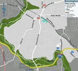 Kensington borders Bethesda to the southwest and Silver Spring to the east.
