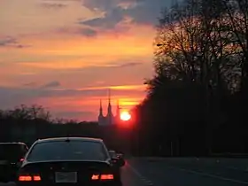Despite being so easy to see from the Beltway, the Mormon Temple is somewhat difficult to find because there is no direct way to get there from a Beltway exit. The easiest and most navigable path is to take Connecticut Avenue to Beach Drive eastbound and, when it ends, make a left turn on Stoneybrook Drive.