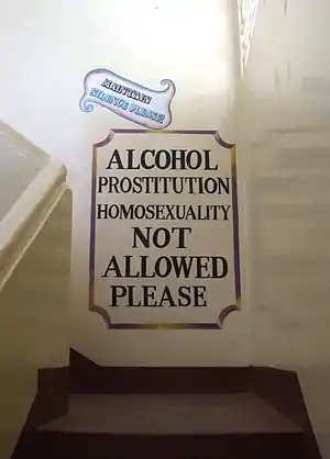 Homosexuality is against the law but is practised secretly. Overt displays of homosexuality (especially male to male relationships) may, at times, result in open hostility. Although violent reactions are quite uncommon, it is best to be discreet if engaging in any such activities with travel mates or locals. However, it is common to see people of the same gender hold hands while engaged in conversation. A new law, with penalties of 10 years of jail for many acts of homosexuality or discussing homosexuality is proposed in the spring of 2023, similar to ones in Ghana and Uganda.