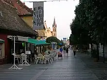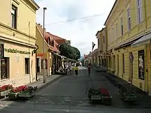 The center of Keszthely is a large square alongside the Lajos Kossuth street. The section of Lajos Kossuth street leading from the square to the Festetics Palace is now a pedestrian mall, were one can find a number of fine restaurants, which – in season – serve large numbers of alfresco diners.