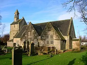 - 🌍 Kilbirnie Auld Kirk, Dalry Road KA25 6HY. July-Aug Tu-Th 14:00-16:00. This is probably on the site of the 6th century "cell of St Brendan", but the oldest part of the present building is the nave from 1470, with the bell tower added in 1490. Aisles were added in 1597 for the Cunninghames of Glengarnock and in 1642 for the Crawfords.The transept and new entrance front were added in 1903-05. The Kirk continues for the time being as an active C of S parish church, with Sunday services at 11:00, but is being considered for closure.