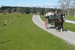 Jaunting Cars were once a common tourist conveyance but are now almost confined to Killarney. They come in various configurations but typically seat four, with a single horse and a driver known as a "jarvey". They'll trot you round town and out to Ross Castle and Muckross; tours of Dunloe Gap involve a transfer from town by boat or conventional car then the jaunting car takes you up the lane.