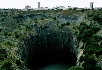 - 🌍 Big Hole and Open Mine Museum. At the western side of the Big Hole is the Open Mine Museum. Consisting of original and carefully reconstructed buildings this museum has preserved a great deal of the city's past. The Eureka, the first recorded diamond discovered in South Africa, can be viewed at the museum. Have some fun sifting through diamond bearing gravel, looking for your own diamond. Experience a diamond mining operation - complete with blastings! Play skittles in the old bowling alley, or stroll through the old buildings which have been reconstructed here at the museum. The Occidental Bar & Restaurant is on site. Entrance 120 rand (2019).