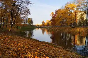 - 🌍 Railway bridge across the river (Железнодорожный мост) (go along Voskova street to the south from Catherine's Cathedral). The existing bridge is modern and uninteresting, but next to it, the pillars of the old bridge made of granite blocks, built in 1866 and blown up in 1944, have been preserved. With great care, you can find the remains of pillboxes near the bridge, and climbing up the old embankment, you can enjoy a wonderful view of the river, which in this place is very shallow and replete with rifts. Also not far from the bridge is a rather nice modern church of all saints of Petersburg, and next to it, on the shore - the source of St. Catherine.