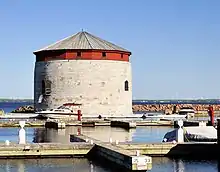 During the War of 1812, Kingston (with a population of 2250) was a major military centre. It was the base for the Lake Ontario division of the Great Lakes British naval fleet, whose aim was to control Lake Ontario. Fort Henry was built on Point Henry in 1813. The present limestone citadel, constructed between 1832 and 1836, was intended to defend the Rideau Canal at the Lake Ontario end, the harbour and the naval dockyard.