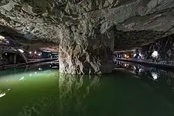- 🌍 Zhaishan tunnels (翟山坑道) (at the southern tip of the western part of Kinmen; Line A tourist bus). Historic underground navy pier, where boats could offload supplies out of reach of Mainland artillery. Artillery guns and boats on display outside. Free.