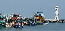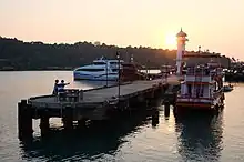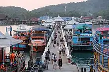 Most ferries operate from Laem Ngop, which has three piers: the Laem Ngop (Tha Khrom Luang or Tha Laern Ngop) pier is approximately 700 m west of Laem Ngop; the Centrepoint (Tha Centre Point) pier is about 3.5 km northwest of Laem Ngop. These piers serve both vehicle and passenger ferries; the Ko Chang vehicle ferry pier is in Thammachat Bay (Ao Thammachat), around 15 km west of Laem Ngop.