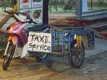 All of Ko Lipe can be covered on foot. A walk between the two furthest walkable points on the island, Serendipity Resort and Patai Galah Beach, takes about 45 minutes for the 3 km journey, using the roads. There are many motorcycles on the island, although none of them are for rent. The saleng are motorcycle sidecar taxis (labeled as such with drivers wearing numbered blue vests) that charge ฿50 per person for any journey or ฿300 per hour, they are typically parked near the 7-Eleven or ordered by phone (phone numbers are displayed on many of the electric poles). There are pickup trucks on the island belonging to resorts and used to transfer their customers' bags on arrival/departure and as shuttles. Certain resorts also operate golf carts as shuttles. Narrow concrete roads link the various beaches.