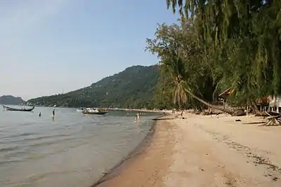 More populated than other east coast beaches however this doesn't mean it's busy. There is no town or village here and only 4 resorts, each with an attached restaurant and one really tiny shop which is up the hill behind the resorts. There are no ATM machines. There are no really cheap places to eat as there are in Mae Haad.