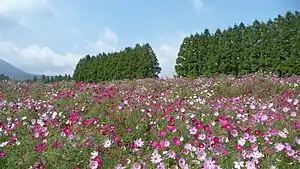 - 🌍 Ikoma Plateau (Hana-no-Eki Ikoma Plateau), 8565-28 Minaminishikata, Kobayashi City, Miyazaki Prefecture 886-0005 (From Kobayashi Station drive on Route 1 for about 20 minutes), ☏ +81 984-27-1919. 9AM to 5PM. This is a flower garden located about 20 minutes from downtown Kobayashi City. It has a variety of flowers that bloom at different times throughout the year. The most spectacular time to visit is in October when there is over one million cosmos flowers. There are a number of events held at this time during the day and night to attract visitors from around Japan. One of Kobayashi City's important sightseeing attractions. ¥500.