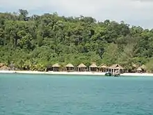 Long Set Beach is located to the North of Koh Tuich on the sunset side of the island. It can be reached via a 45-minute jungle trek or private boats hired either in Sihanoukville or at the dock in Koh Tuich. A private boat from Koh Tuich costs US$5-10. It is a secluded 7-km strand of white sand beach, starting at Broken Heart Guesthouse and ending in Sok San, with crystal clear water and excellent opportunities to view the phosphorescence. The sunsets are beautiful and, at the start of the rainy season, the lightning storms are phenomenal. Closed during the rainy season.