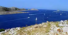From the neighbouring islandы of Pasman and Dugi Otok, the archipelago is separated by straits, and from the island of Murter by the bay of Murtersko more (Murter's sea).