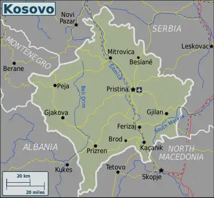While the independence of Kosovo is disputed by some states, from a visitor's perspective it exercises control over its land, with its own entry requirements. For this reason, Wikivoyage treats Kosovo as a country. This is not an endorsement or refutation of either side of the dispute. |