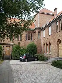 - 🌍 Salesian Monastery (Klooster van de Visitatie), Hebronlaan 5. The order of the Salesians was founded in 1610 close to Annecy in France by Jeanne de Chantal and Francis of Sales, who gave his name to the order. On 12 February 1667, a monastery was founded in Brussels -- then part of the Southern Netherlands -- but the success of the order was strongly variable in time and by the first half of the 19th century it was nearly extinct in Brussels. A second start on 21 November 1845 had more success, and not even a century later the original location was too small to house the order. Architect Paul Bellot, born in 1876 and specialised in religious architecture, was tasked with the design of a new monastery located outside Brussels. Then still rural Kraainem was chosen because of its remote location, at the time there were no other buildings on the hill, and the closest settlement was Low Kraainem which was only accessible by a narrow unpaved road (now the Kapellelaan). Construction started in 1928, and by the end of 1930 when it was finished, the monastery had become a popular pilgrim destination. Unlike similar monasteries in Belgium, which started out small and were gradually expanded, the availability of sufficient space and budget allowed the entire site to be built at once between 1928 and 1930. All buildings thus show the same style elements, many of which were typical for the designs of Paul Bellot: polychrome bricks from Zandvoorde (a municipality close to Oostende near the Belgian coast) and extensive use of concrete for structural and decorative purposes. Art deco and brick modernism influences can be observed in all aspects of construction. Only the building sides facing the streets (Kapellelaan and Hebronlaan) are decorated (for example, a Madonna sculpture above the entrance), the sides facing the inner sanctum, gardens and orchards do not have any decoration. The architecture and degree of decoration reveals the originally intended purpose of the rooms in the buildings, a feature called architecture parlante. The facades are also hierarchically decorated, with the chapel as most important and thus most extensively decorated part of the structure. The interior resembles a Medieval monastery, with style elements of the Arabic and Mozarabic arts. Illumination was considered paramount by Paul Bellot, and windows are consequently large enough to illuminate the rooms they are intended for, without penalizing decoration. Much of the original woodworking, both indoor and outdoor, has been preserved, as evidenced by the oak inner doors and staircases. The monastery is still in use today, and remains the only Salesian monastery in Belgium. It is not normally opened to visitors, reservations are mandatory. The monastery can be reached from Low Kraainem by following the Jozef van Hovestraat and afterwards the Kappellelaan up the hill.