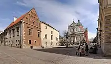 - At the northwest corner, Pałac Pod Krzysztofory fronts Szczepańska, while Pałac Pod Baranami (Palace of the Lambs) is on the southwest corner.