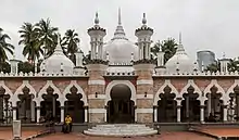 - ๐ Masjid Jamek (Jamek Mosque). It's at the convergence of the Klang and Gombak rivers. The stately Masjid Jamek, constructed in 1909, is one of the oldest mosques in the city. Inspired by Mogul mosques in North India, this building's notable features are three elegant domes which used to dominate the KL skyline long before skyscrapers were built there. Its location between two rivers makes it appear as an island of tranquility in the busy city. Major construction work is ongoing due to the River of Life program, which is going to turn this area including the river into a prime recreational hotspot of the city.