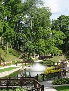 - Walk the town park. The park is very nice, with hills, winding paths, flowers, sculptures and water.