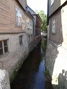 With the smaller Alekšupīte River running through its old town centre, it is known as "The Latvian Venice". Indeed the river flows alongside the walls of many of the town’s houses. Like Ventspils, Kuldīga's streets are all made of various kinds of cobblestone.