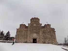 - 🌍 Matejče Monastery (Матеички манастир; Želigovo Monastery), village of Matejče. West of Kumanovo within the Skopska Crna Gora mountain range is this 14th-century monastery. Built atop the foundations of an older church, Serbian King Stefan Dušan began reconstructing the monastery and it was completed by his son Stefan Uroš V in 1357. The monastery's church, dedicated to the Ascension of the Virgin Mary, is in the Byzantine style and has one larger dome and four smaller domes. Its roof was removed by the Ottomans in the 18th century and put atop the Eski Mosque, though it was renovated in the 1920s and 1930s. The village is now primarily Albanian with a small Serb minority. The monastery was occupied by Albanian insurgents during the 2001 conflict who damaged some of the interior frescoes and stole various objects.
