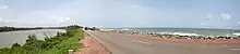 - π Maravanthe Beach. A rather unusual beach with the Arabian Sea and the Suparnika River flowing in parallel. The river makes a U-turn and goes westward to join the sea after a journey of nearly more than 10 km (6.2 mi). White sand spread miles and miles along the coast fetches the beach a nickname of Virgin Beach.