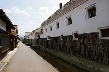 - Shirakabe Warehouses, Kurayoshi-shi (From JR Kurayoshi Station: 12 mins by Hinomaru or Nikko bus Shinai Line, from Shirakabe-Dozogun-Mae bus stop: immediate access.), β +81 858-22-1200. The warehouses that line this street comprise some of the oldest buildings in the area, dating back to the Edo and early Meiji periods. Shops specializing in sake, oil, rice, or soy sauce once formed a prosperous shopping district, and the old-style buildings with white plastered walls, black wall panels, and red tiled roofs give an authentic glimpse back into old Japan. Many of these buildings have since been remodeled on the inside to offer regional crafts and souvenirs. You can also try soy sauce ice cream and specialty coffees here.