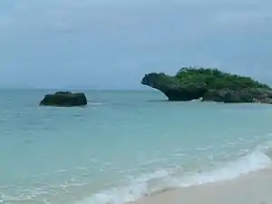 - 🌍 Nakamoto Beach (仲本海岸). Doesn't have turtles, but the reef is a quite good snorkeling spot. It seems to only be officially open for swimming during low tide, when the lagoon becomes completely separated from the sea. During other times there can be strong currents, so be careful.