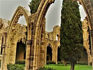 - 🌍 Bellapais Abbey, Zafer Cd (6 km southeast of town). Daily 08:00-18:00. A monastery founded in 1197 by the Canons Regular of the Holy Sepulchre after they fled Jerusalem. The main building you see now was built in the 1270s and the cloister and refectory circa 1330 by King Hugh IV of Cyprus, who resided here. The place was ransacked by the Genoese in 1373 and wrecked by the Venetians in 1489. When the Ottomans took control of Cyprus they handed it over to the Greek Orthodox community, who used it as a parish church. Pockmarks in the refectory walls are from British soldiers enjoying food fights, only with pistols instead of potatoes and stale buns. 20 TL.