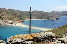 Kythnos is one of the Cyclades islands in the Aegean Sea. The island is of volcanic origin, very dry, and thinly populated.