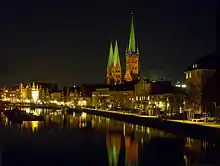 - 🌍 St. Petri (Petrikirche) (near Marienkirche). Its tower platform (which can be reached by an elevator) offers a great view over the city, and if weather conditions allow it you can even see Travemünde (17 km to the north-east).