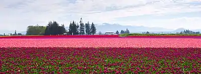 - Skagit Valley Tulip Festival. La Conner is located at the edge of the largest tulip-growing region in the world, the Skagit Valley. In Spring, the local fields are filled with ribbons of color as the valley hosts the annual Tulip Festival the entire month of April. The protected farmland around the town is said to be some of the richest in the world, and the region grows everything from strawberries to wheat, with many local farmstands selling their wares on the highways and in town.
