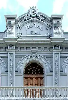 Facade of the Leal theatre in eclectic style.
