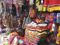 - 🌍 Ayni Bolivia (Fair Trade handicrafts), Av. Illampu 704 (one block from witches market), ☏ +591 2 279 2395, ayni@aynibolivia.com. M-F 08:00-20:30, Sa 10:00-18:30. Fair trade store member of World Fair Trade Organization (WFTO), has 26 different groups, with a wide variety of handicrafts (alpaca, wood, ceramics, native textiles, table cloth, greeting cards). One store is located inside Hotel Rosario and other at the street. US$2-50.
